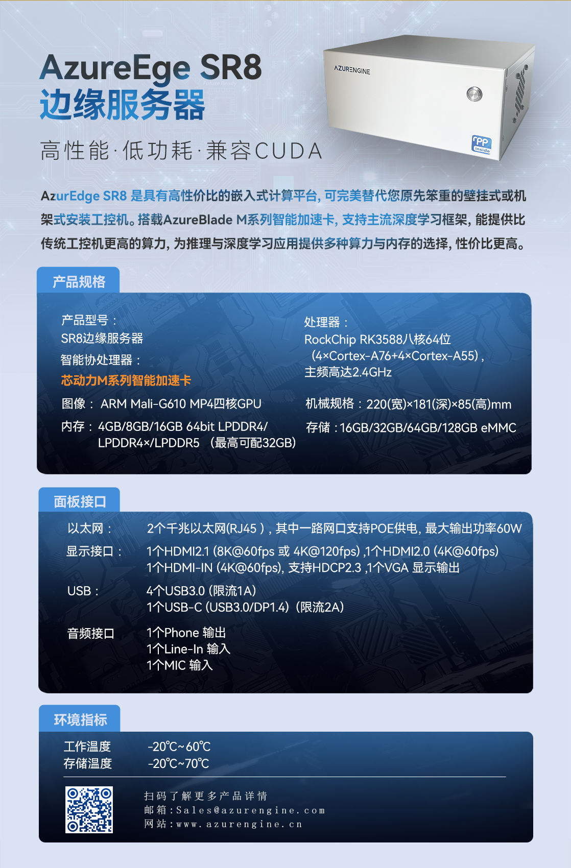 产品文档 产品文档 硬件产品资料 开发资料 菜单 产品资料 教学视频 RPP-R8 AE7100 芯片资料 AE7100芯片 下载 RPP-R8 AE8100 芯片资料 AE8100芯片 下载 AzureBlade K340I M.2 智能加速卡资料 AzureBlade K340l M.2 智能加速卡 下载 AzureBlade M系列 智能加速卡资料 AzureBlade M 系列智能加速卡 下载 AzureBlade N320N 智能加速卡资料 AzureBlade N320N 智能加速卡 下载 AzureBlade M520N 智能加速卡资料 AzureBlade M520N 智能加速卡 下载 AzureEge Si7 边缘服务器资料 Si7边缘服务器 下载 AzureEge Si5-N 边缘服务器资料 Si5-N边缘服务器 下载 AzureEge SR8 边缘服务器资料 SR8边缘服务器 下载
